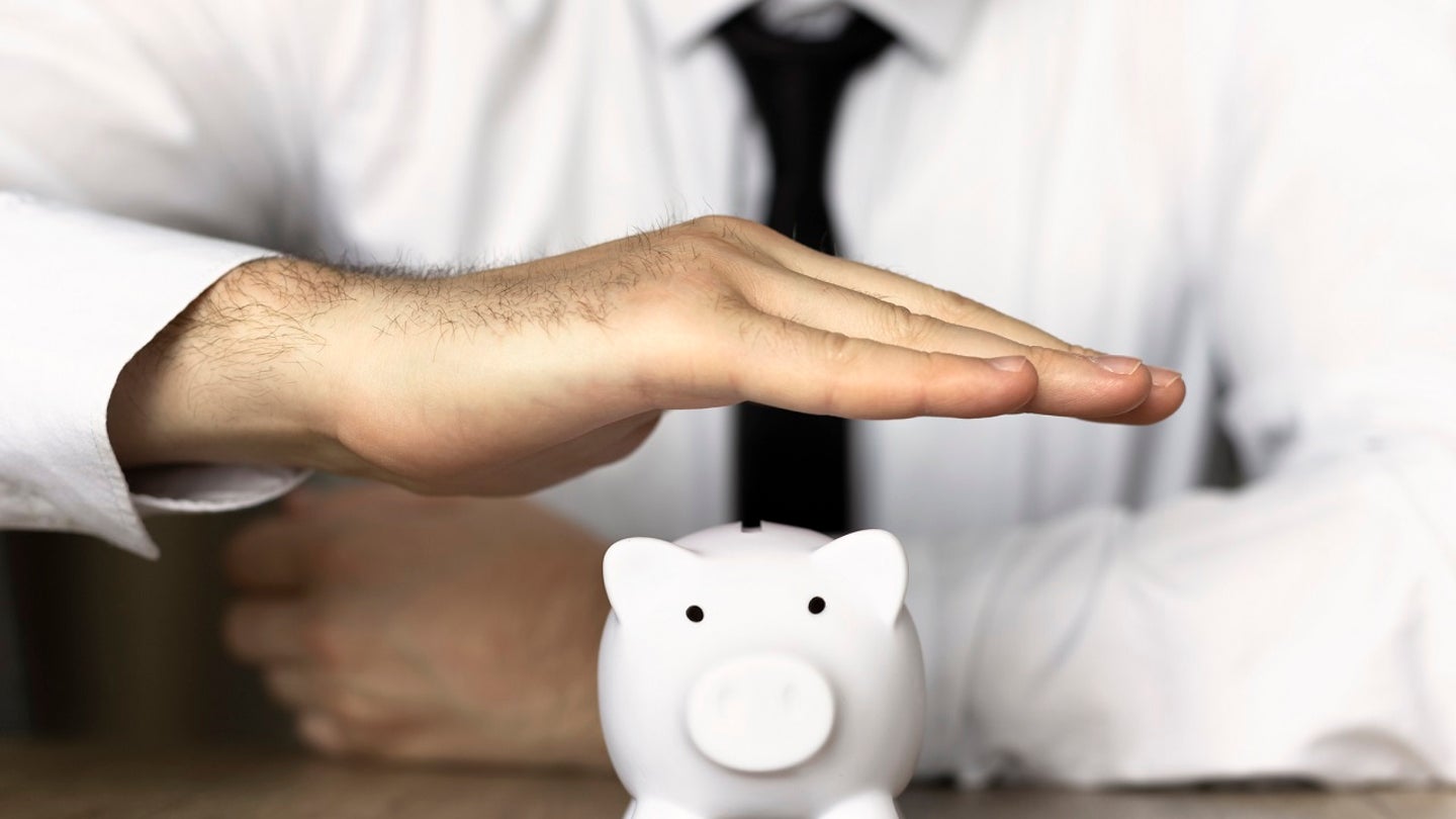 Businessman in suit is holding piggy bank. Finance Savings concept (iStock / iStock)